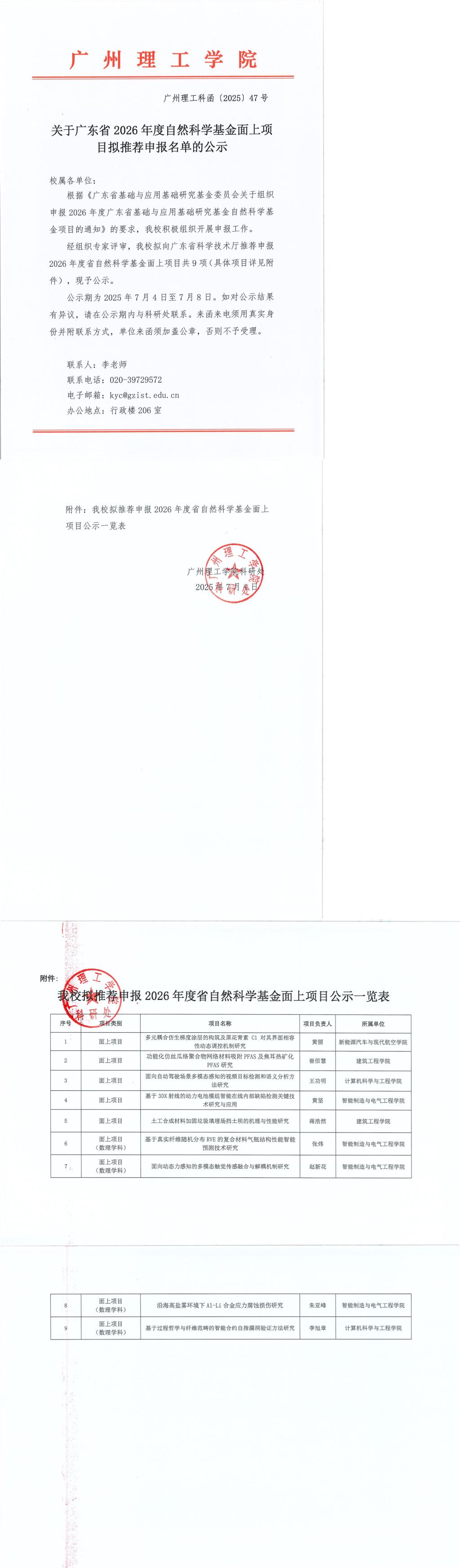 关于广东省2026年度自然科学基金面上项目拟推荐申报名单的公示
