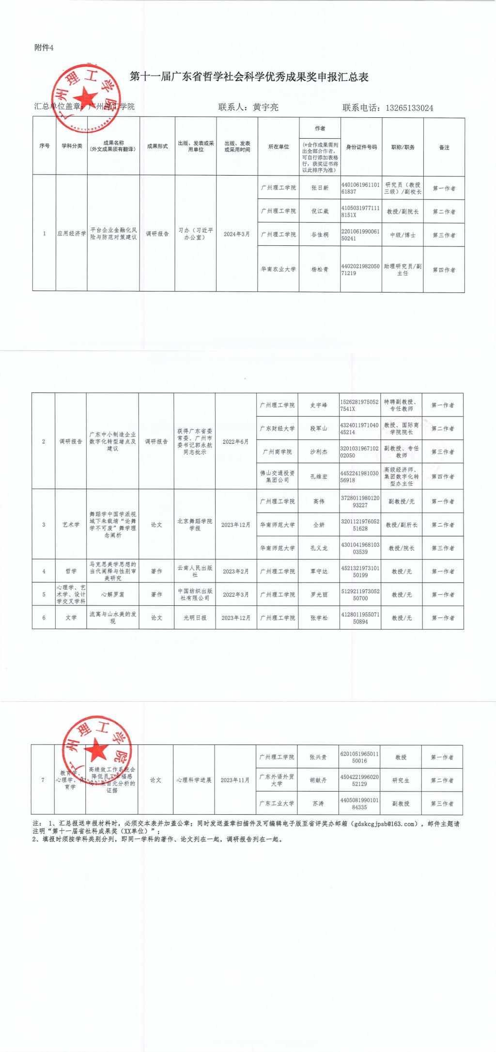 广州理工学院关于第十一届广东省哲学社会科学优秀成果奖项目公示