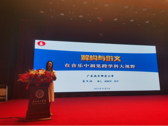 (黄宇亮)2025年10月9日,广州理工学院特邀广东技术师范大学唐文滔教授走进校园,开展了一场题为“解构与衍义:在音乐中洞见跨学科大视野”的专题讲座。本次讲座由科研处处长崔怀林主持,吸引了众多师生踊跃参与,现场气氛热烈,互动频频。