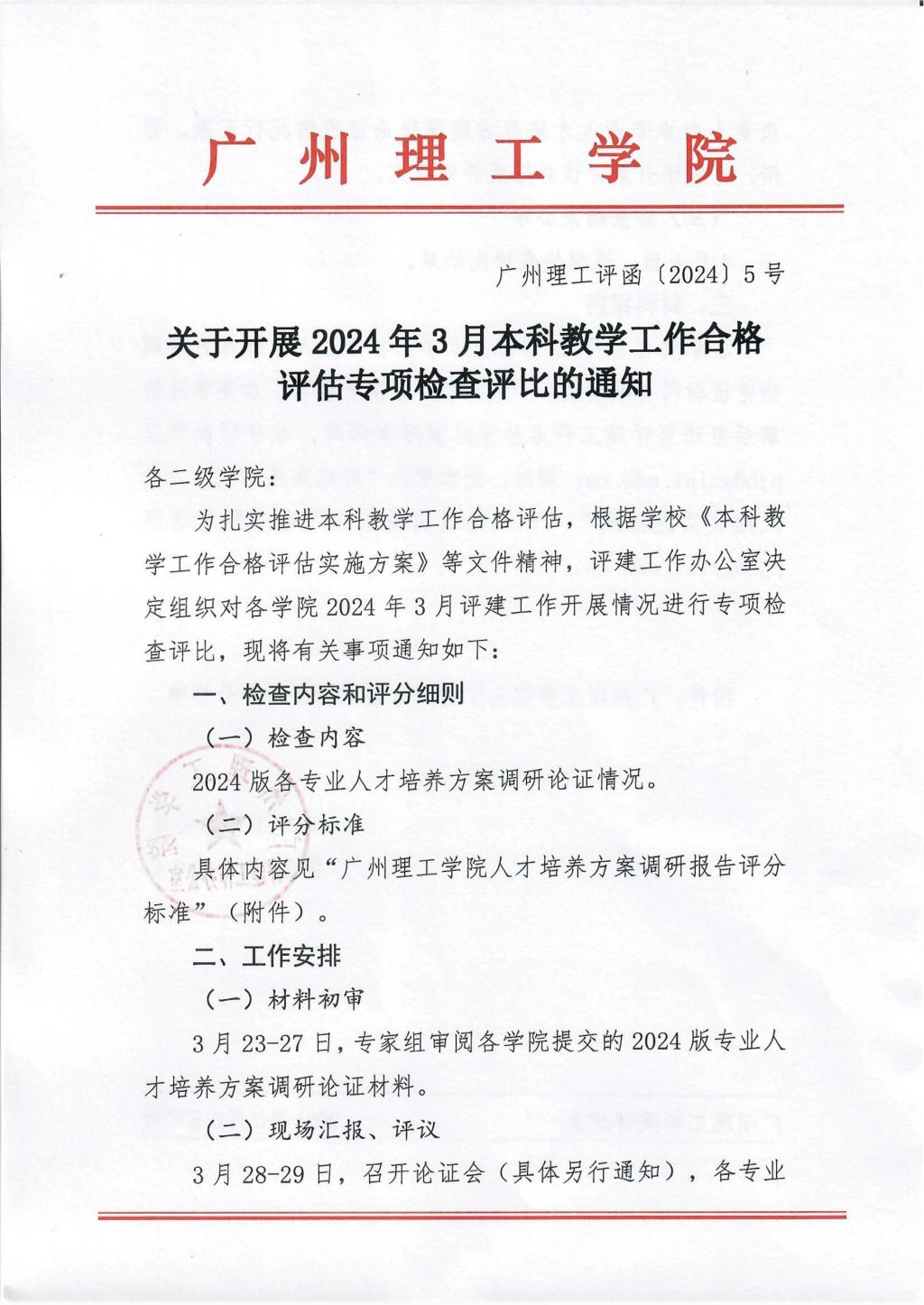 广州理工评函〔2024〕关于开展2024年3月本科教学工作合格评估专项检查评比的通知