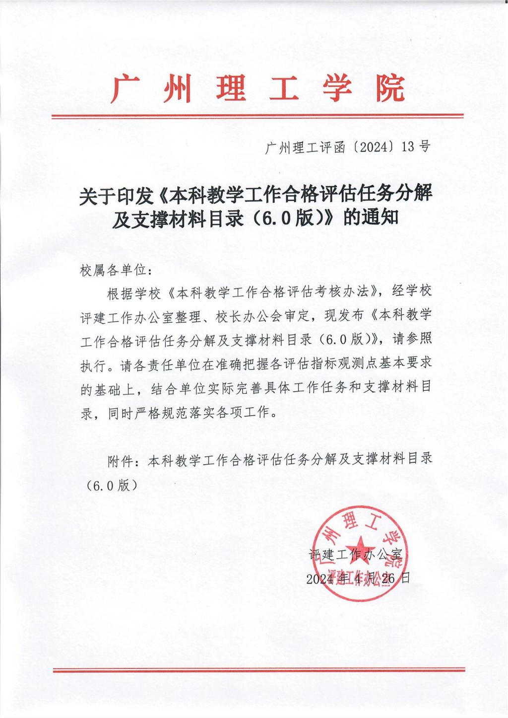 关于印发《本科教学工作合格评估任务分解及支撑材料目录(6.0版)》的通知