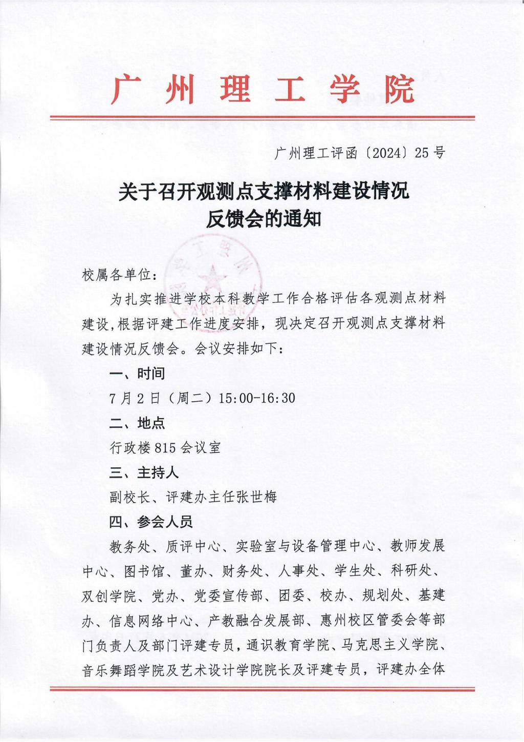 广州理工评函〔2024〕25号 关于召开观测点支撑材料建设情况反馈会的通知