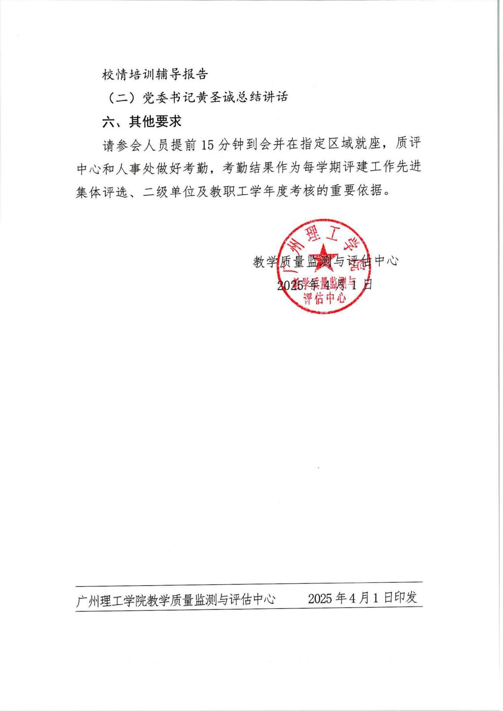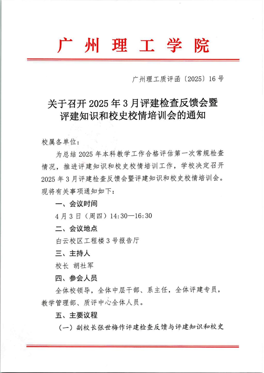 广州理工评函〔2025〕18号 关于召开2025年3月评建检查反馈会暨评建知识和校史校情培训会的通知